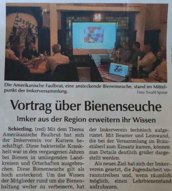 Unser Vorstand Ewald Spinar hat einen ausführlichen Vortrag über die Amerikanische Faulbrut gehalten.